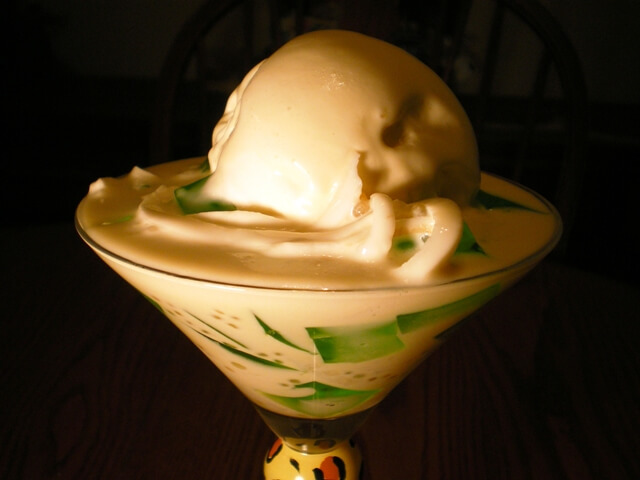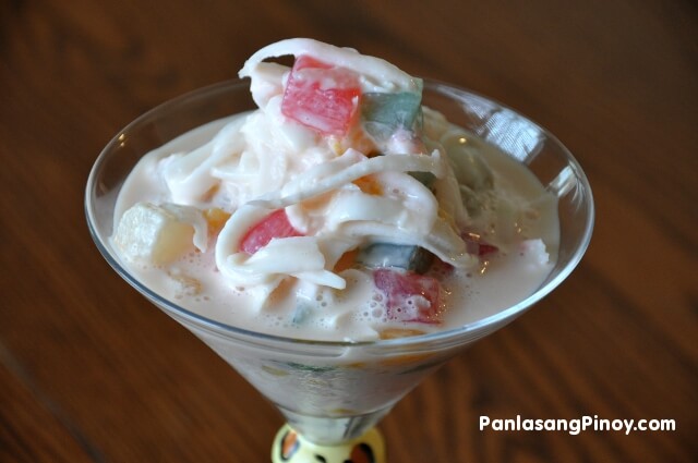 Buko Pandan- Buko pandan salad is a dessert consisting of pandan flavored gelatin and shredded young coconut mixed with cream and sweetened milk.